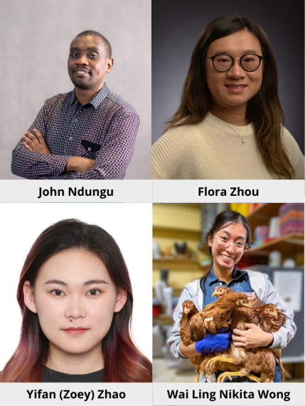 Flora Zhou is currently a course-based master’s student in Animal Biosciences, specializing in animal nutrition. She earned her BSc in Biomedical Sciences from the University of Waterloo, where she discovered her interest in biochemistry, in particular, metabolic pathways involved in nutrient digestion.